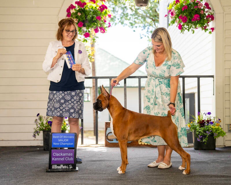 Bred By: Cheryl & Tim Emerson of Top Knotch Boxers, Michelle Yeadon of Mephisto Boxers and Shelly Dueck of Top Rank Boxers